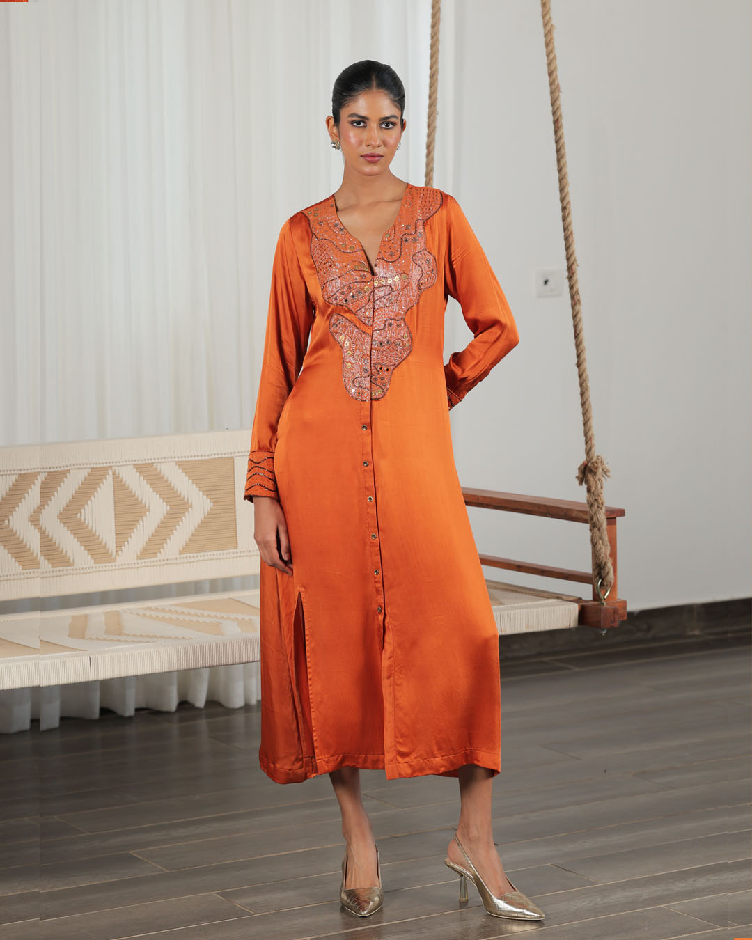 Burnt Orange Hand-embroidered dress