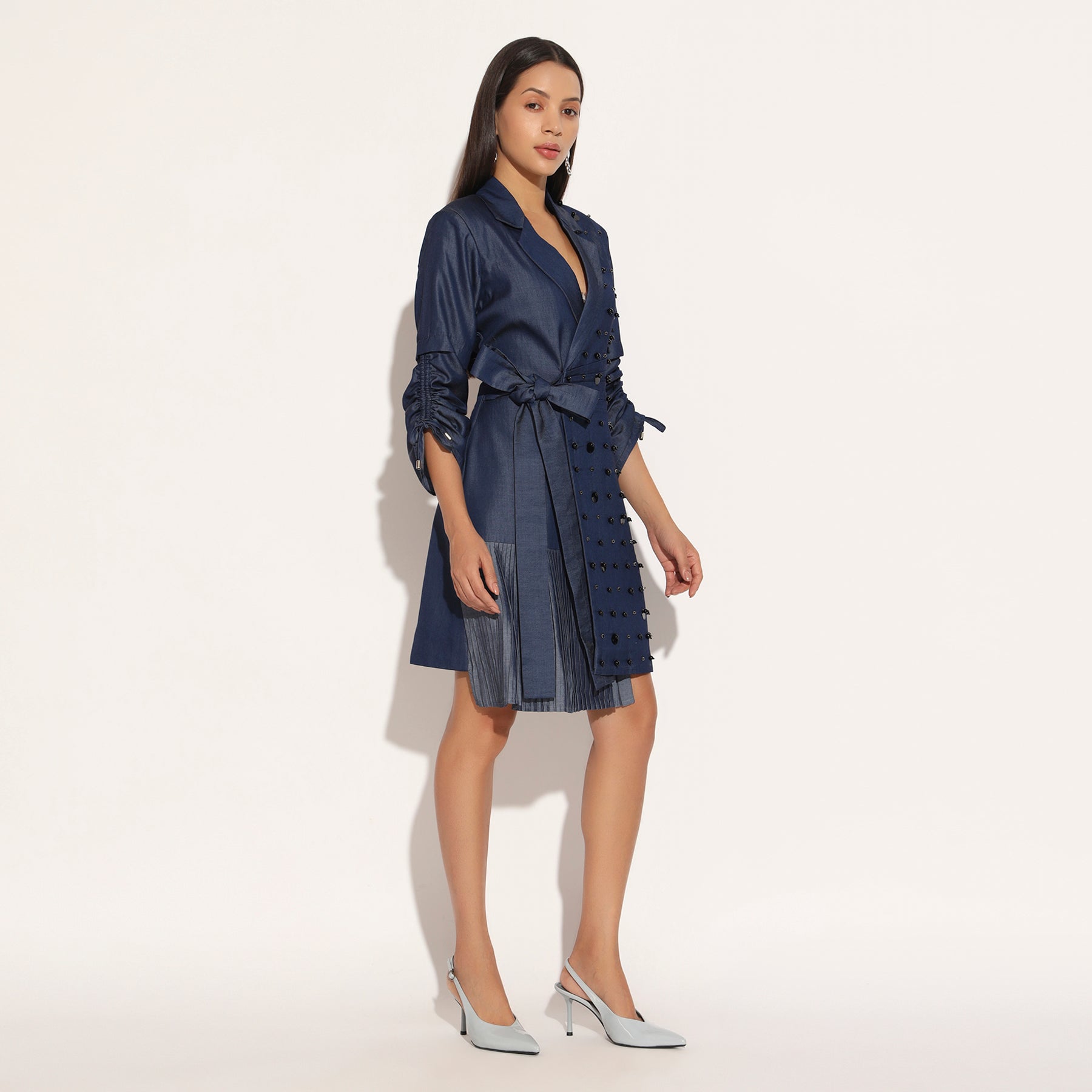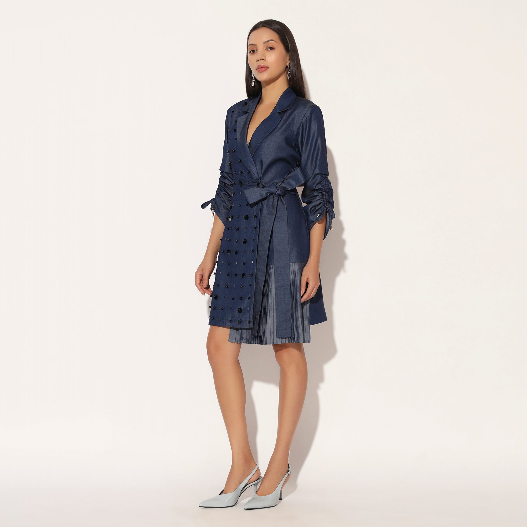 ANEBULA EMBROIDERED JACKET DRESS - BLUE | LINETRIBE