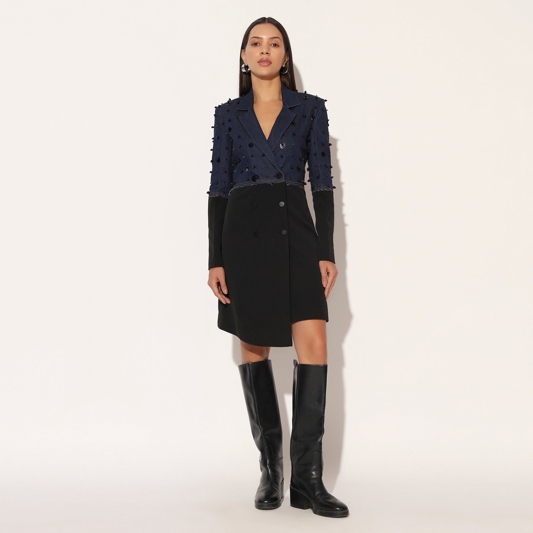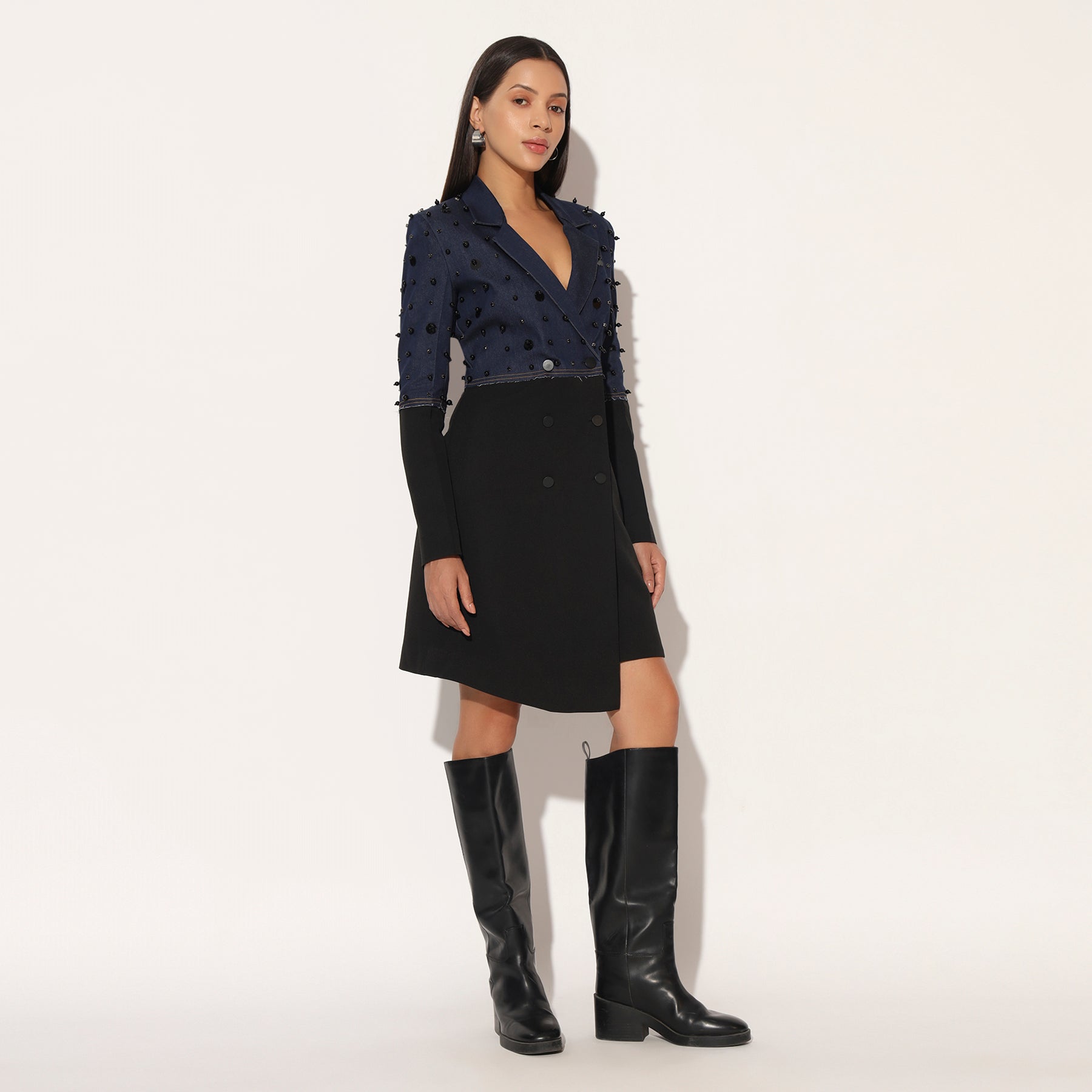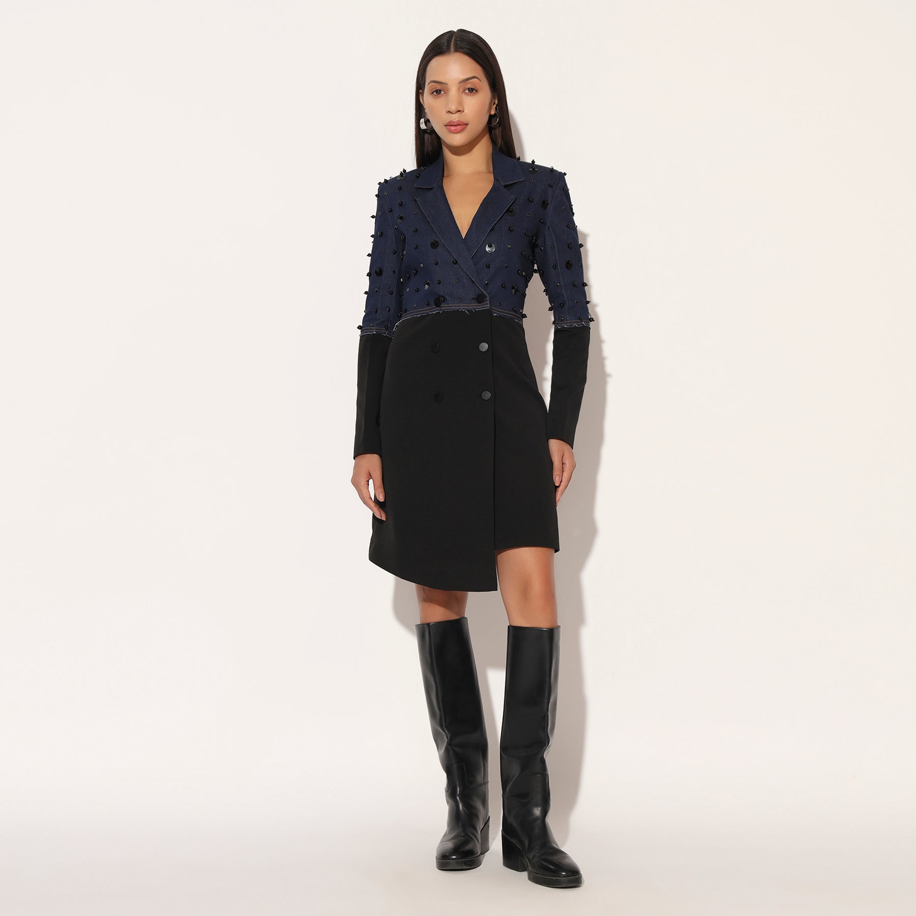 VEYORA JACKET DRESS - BLUE BLACK | LINETRIBE