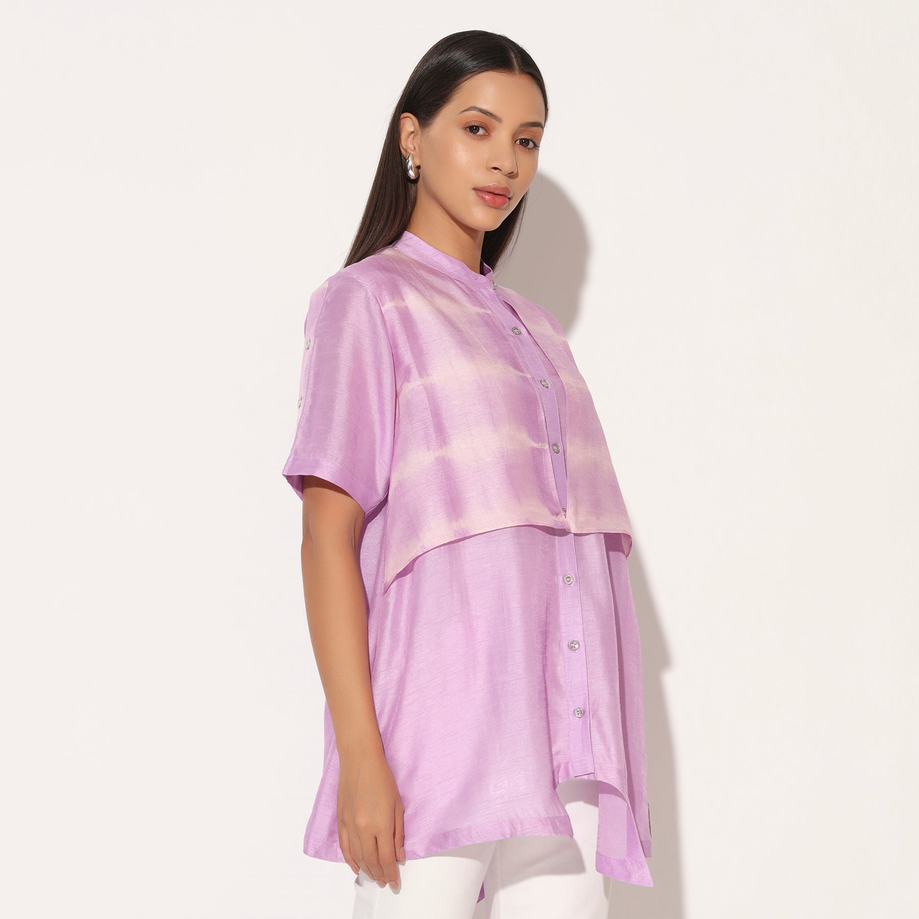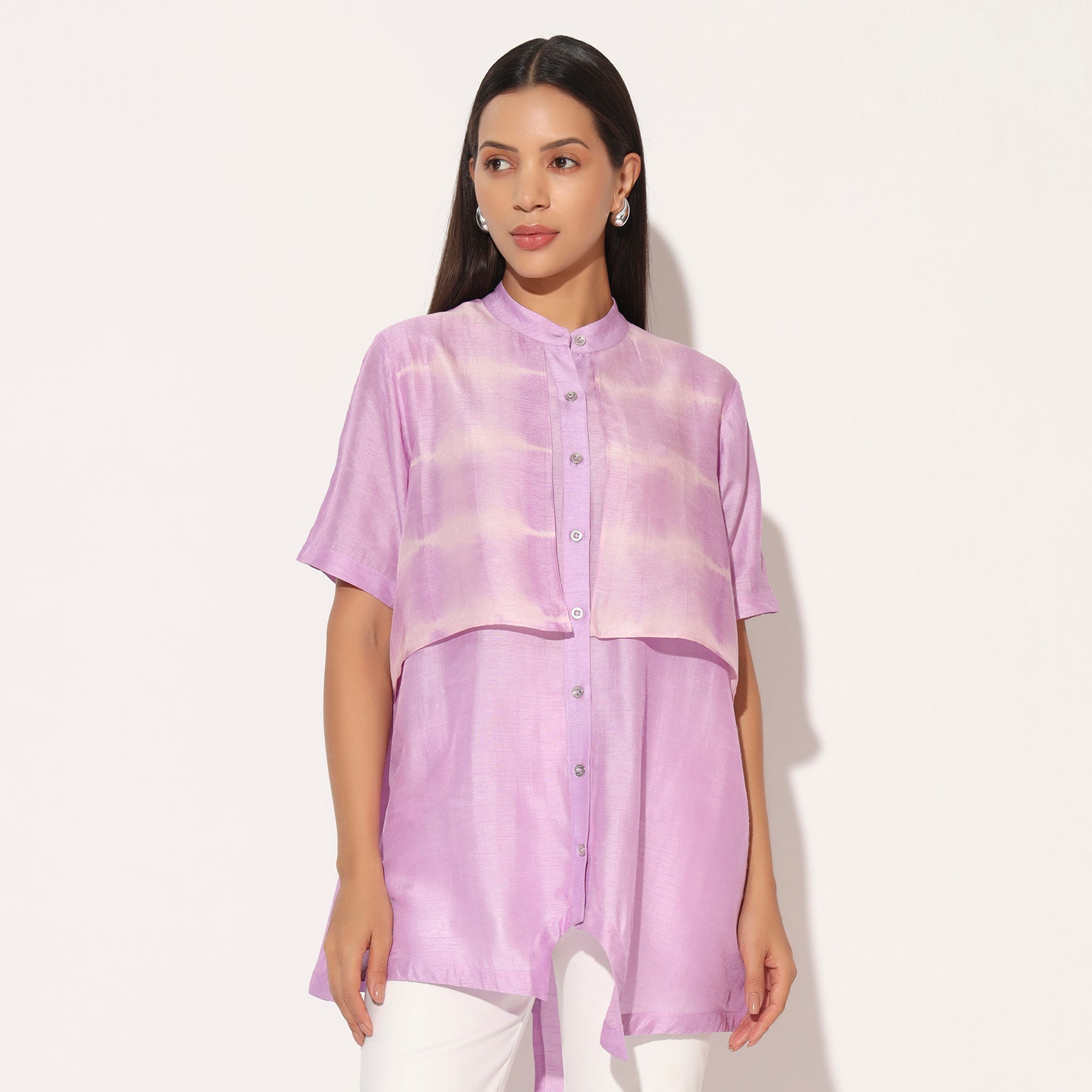 ZEPHYRA SHIBORI STRIPED SHIRT - LAVENDER PINK | LINETRIBE